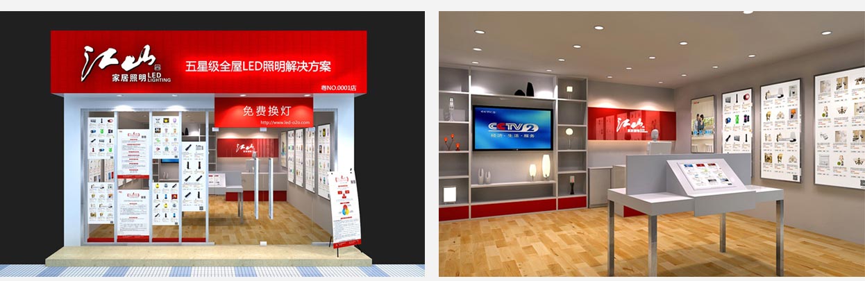 為了達到更好的銷售效果和更低的開店成本,中擂團隊突破傳統店面產品展示與銷售模式,為江山LED照明創造出新的終端銷售模式:江山網上商場+江山E購店。該模式實現了網上虛擬產品展廳與實體產品展示相結合,消費者不僅可以通過網上商場挑選、下單購買,還可以在終端店實現購買和服務,使品牌達到雙向銷售的效果。