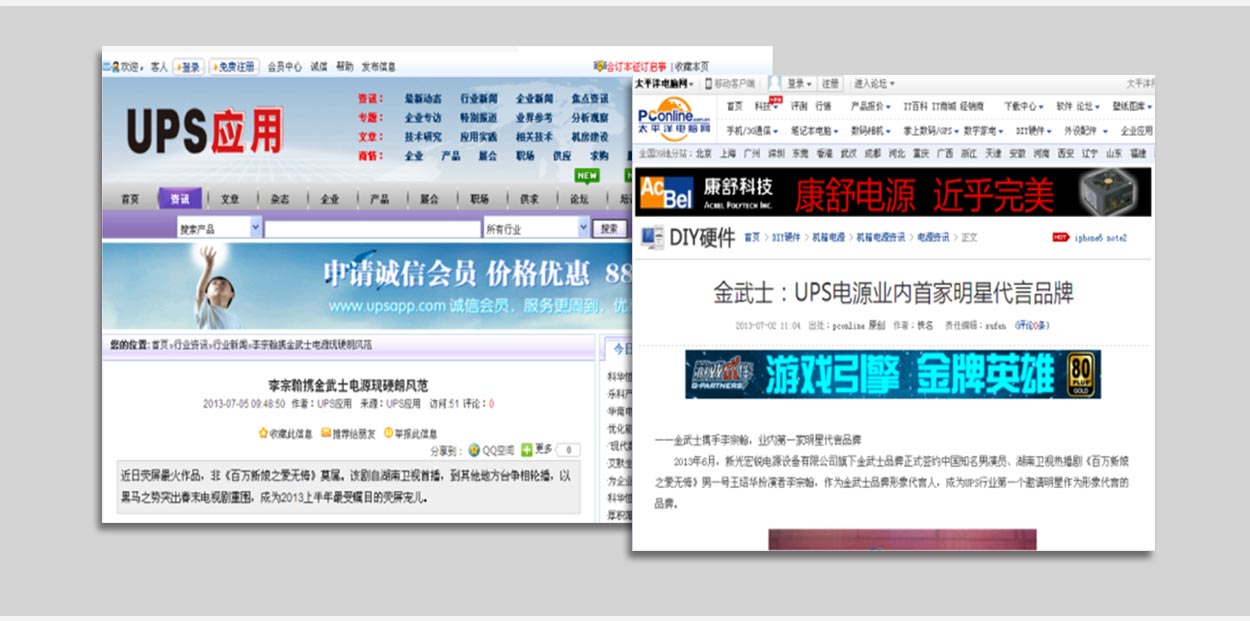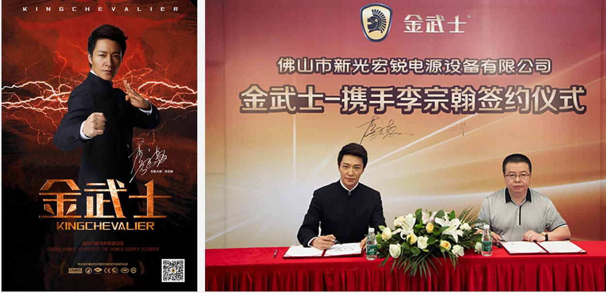 在CCBD中擂的協(xié)助下,2013年6月21日,新光宏銳電源設(shè)備有限公司金武士品牌正式簽約中國(guó)知名男演員、湖南衛(wèi)視熱播劇《百萬新娘之愛無悔》男一號(hào)王紹華扮演者李宗翰先生作為金武士品牌形象代言人,成為UPS行業(yè)第一個(gè)邀請(qǐng)明星作為形象代言的品牌。通過系列的宣傳推廣,極大地提升了金武士品牌的市場(chǎng)知名度與美譽(yù)度。