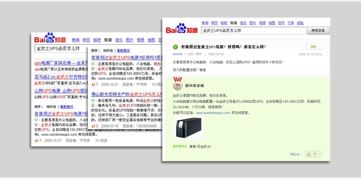 為了進(jìn)一步提升金武士品牌的知名度,CCBD中擂全方位整合金武士線上線下傳播策略,通過百度、360關(guān)健字營(yíng)銷、軟文炒作、知道、百科、問答、論壇、微博、微信進(jìn)行全網(wǎng)信息覆蓋,專業(yè)網(wǎng)站的廣告投放、網(wǎng)站聯(lián)盟廣告播放、新聞門戶網(wǎng)站話題炒作等線上傳播;品牌推廣會(huì)、展會(huì)推廣、專業(yè)雜志投放等線下活動(dòng),全方位進(jìn)行品牌曝光,短時(shí)間內(nèi)快速提升品牌知名度。