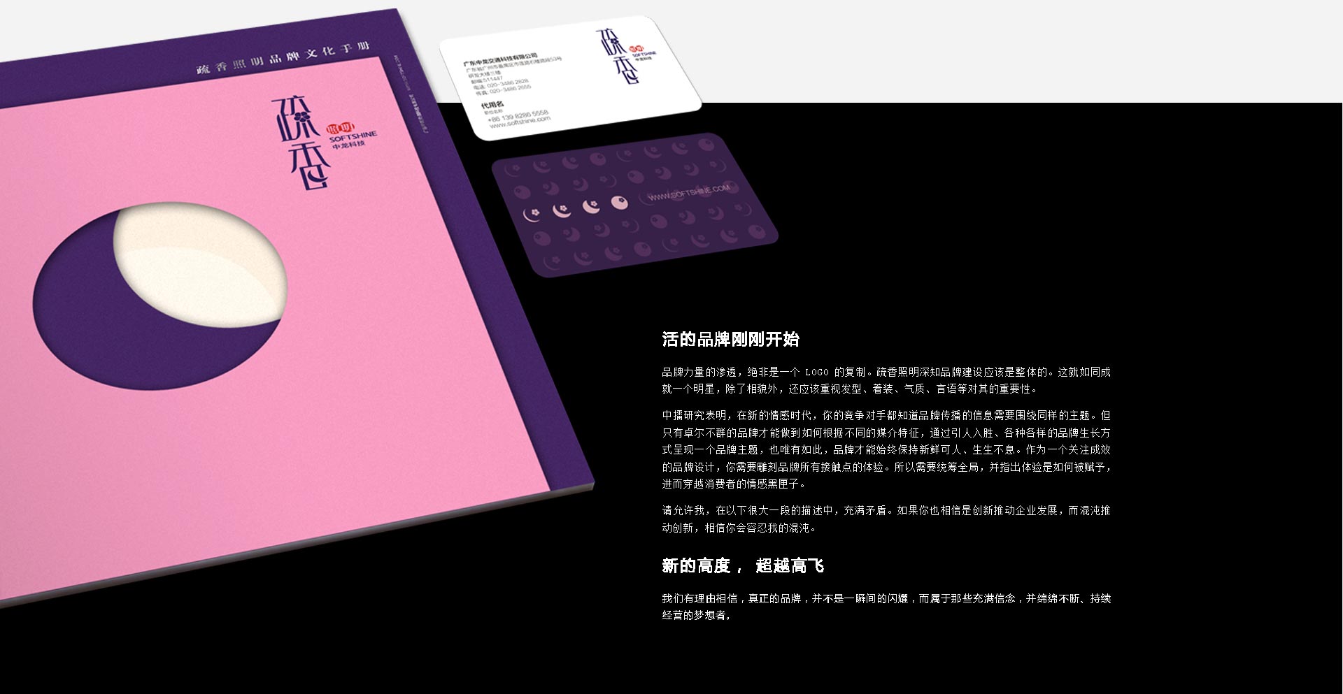 在色彩上,采用中國紅和高貴紫,使品牌的基調(diào)向中性化、暖基調(diào)靠攏,更適合未來的品牌延伸。同時具有創(chuàng)新意識的梅花+月相的生長輪回表達(dá)方式,代表著疏香照明品牌深厚的文化背景及基調(diào),是疏香照明至誠至情的象征,是一種鄭重的承諾,顧客將直覺的感受到疏香照明品牌用心尊重的價值觀。至此,疏香照明優(yōu)雅而出,帶著東方魅力,以極簡的方式自由變幻。疏香照明品牌識別系統(tǒng)的開發(fā),代表了一種人生態(tài)度的號召,也將成為一個開啟文化照明時代的精神符號。