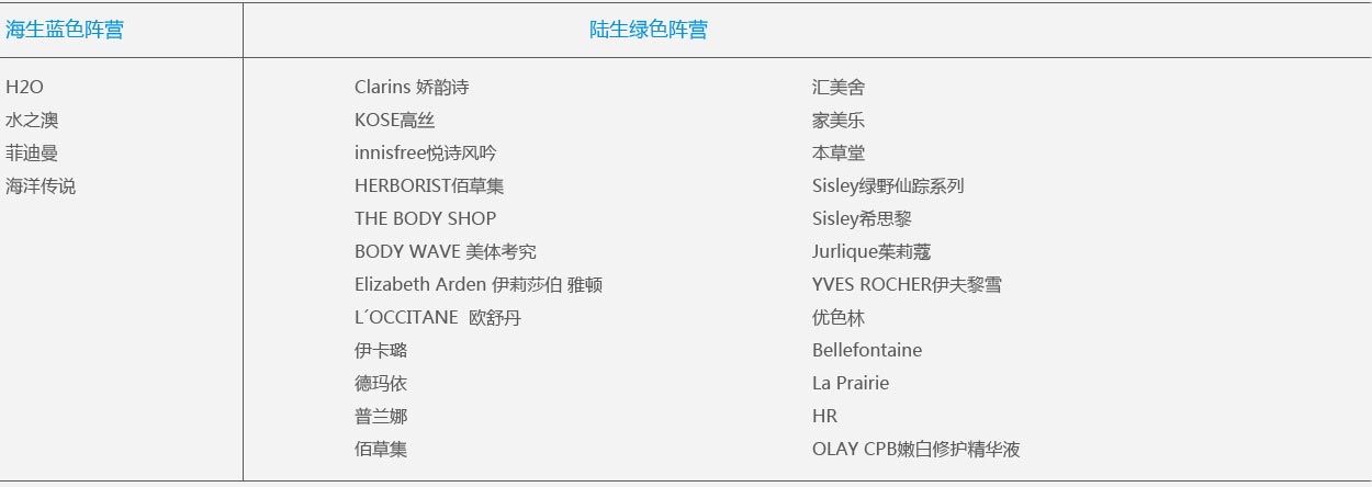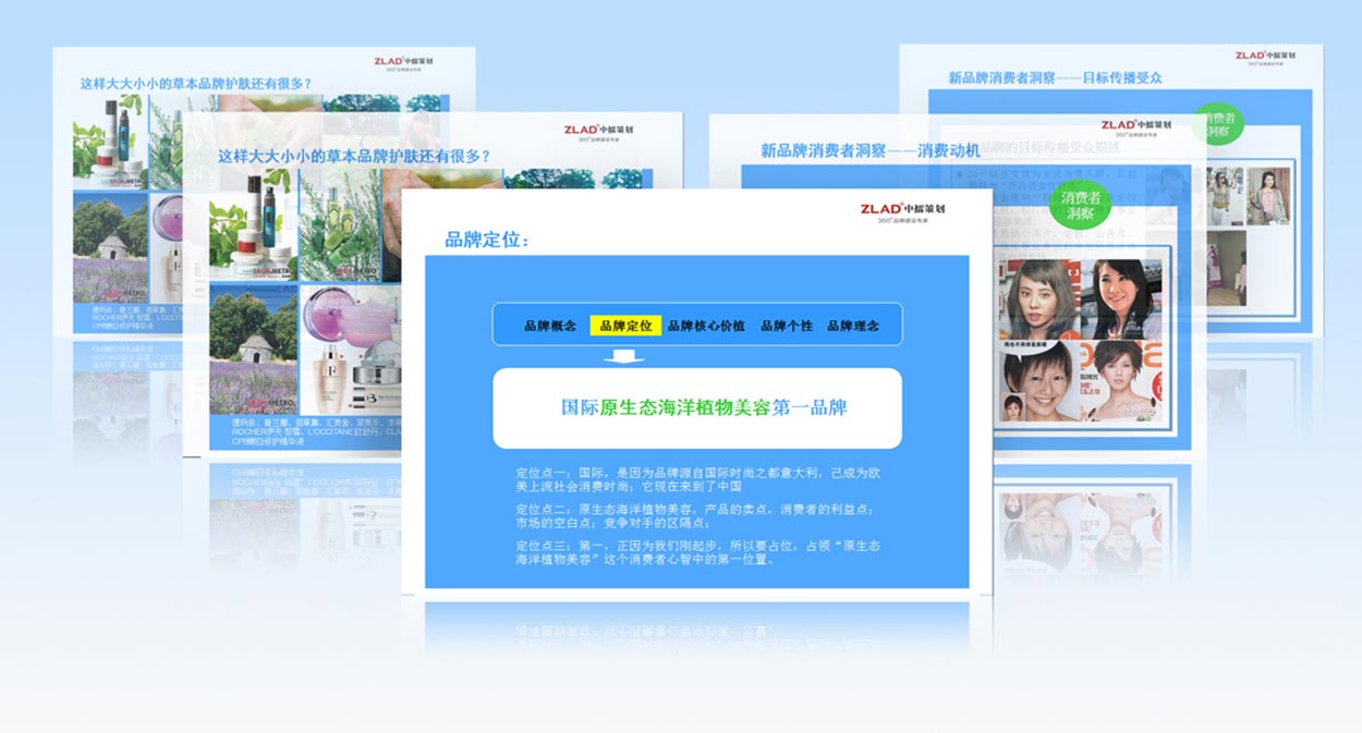 綜觀現在市面上的化妝品品牌打的草本牌都是以陸生植物為主,能不能創造一種新的概念,以海洋植物做為一個差異化的點呢?如果我們將陸地稱之為“綠色”,將海洋稱之為“藍色”的話,就可以將當前天然化妝品品牌劃分為兩個陣營:綠色草本美容陣營、藍色植物美容陣營。當消費者在選擇時就很容易將我們與其它品牌的區別開。