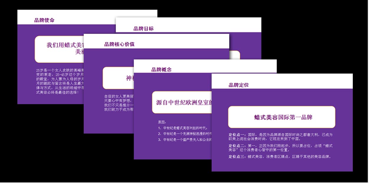 通過上面的分析我們基本是可以確定品牌將要走的方向:以中世紀的美麗文化為品牌背景,打古方秘制蠟式美容產品概念牌。