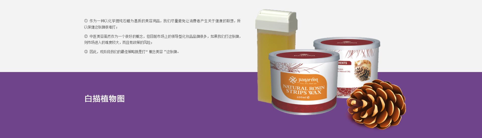 “概念美容”這張牌該怎么打?才能有效的區隔競爭品牌。打什么樣的概念,才能讓我們以一個鮮明的形象出現在消費者的視線。讓我們再回到原點,了解一下目前市場上美容用蠟主流品牌的狀況。