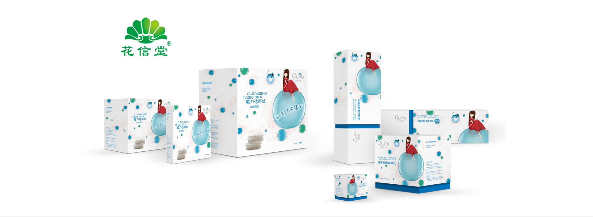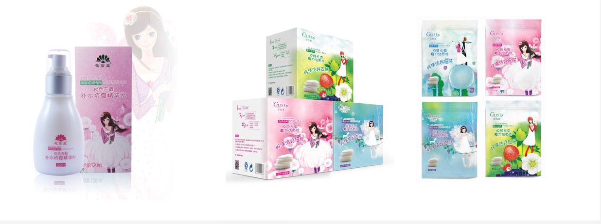 好的包裝會(huì)讓產(chǎn)品自己說話,直接打動(dòng)消費(fèi)者,增加消費(fèi)者的購買欲,并且能夠進(jìn)一步提升產(chǎn)品的附加值。根據(jù)花信堂品牌的品牌定位,我們采用符合年輕少女審美心理需求的卡通形象對(duì)產(chǎn)品進(jìn)行包裝。